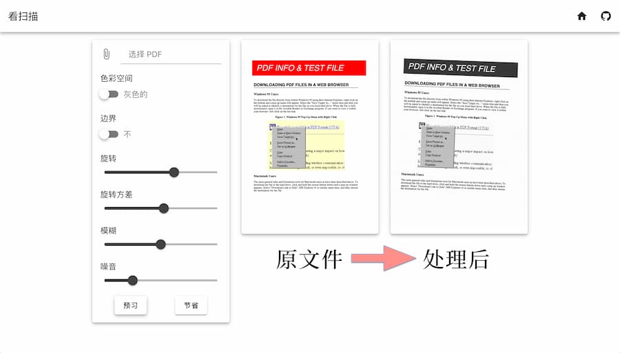 一个能够让 PDF 看起来就像是扫描件一样的纯前端网站。你再也不需要麻烦地打印之后扫描了,你所需要的就是鼠标点几下。